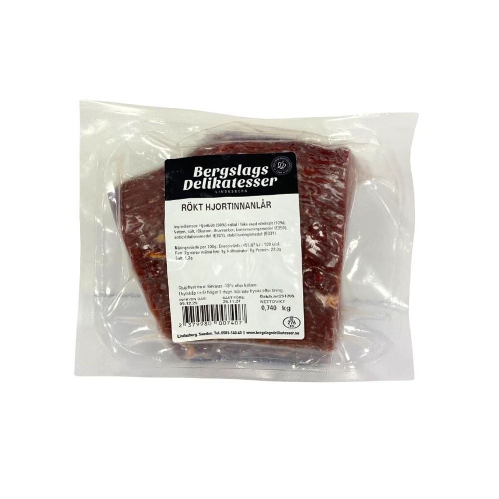 Hjortinnanlår varmrökt Sverige kg